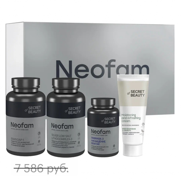 Программа «Neofam. Насыщение влагой» направлена на глубокую гидратацию кожи. Продукты программы подобраны экспертами, оптимально дополняют и усиливают действие друг друга. Одним из важных преимуществ является наличие в составе сухих продуктов программы модифицированного природного цеолита.
