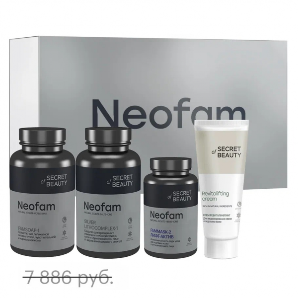 Программа «Neofam. Лифтинг» направлена на устранение возрастных изменений кожи. Продукты программы подобраны экспертами, оптимально дополняют и усиливают действие друг друга. Одним из важных преимуществ является наличие в составе сухих продуктов программы модифицированного природного цеолита.